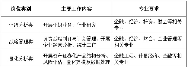公司现已形成了一支以具有丰富评级行业经验的资深分析师为骨干,以具有多元专业背景、优秀综合素质的毕业生为储备的结构合理、梯次分明的评级专业队伍。