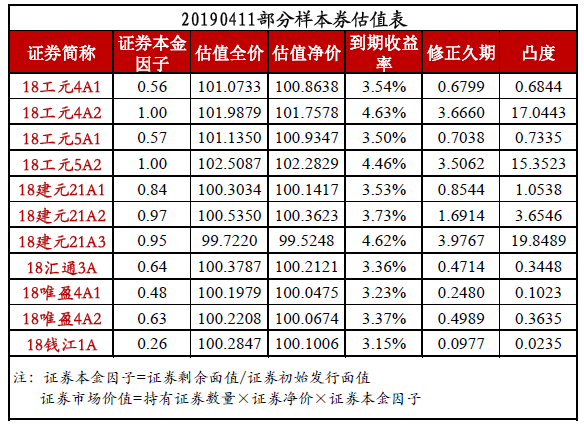 中债资信资产支持证券收益率曲线(2019年4月11日)
