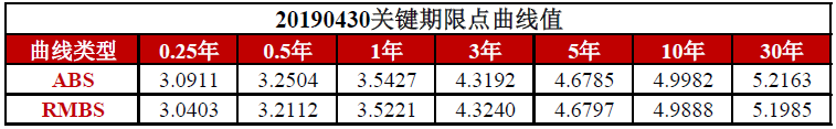 中债资信资产支持证券收益率曲线(2019年4月30日)