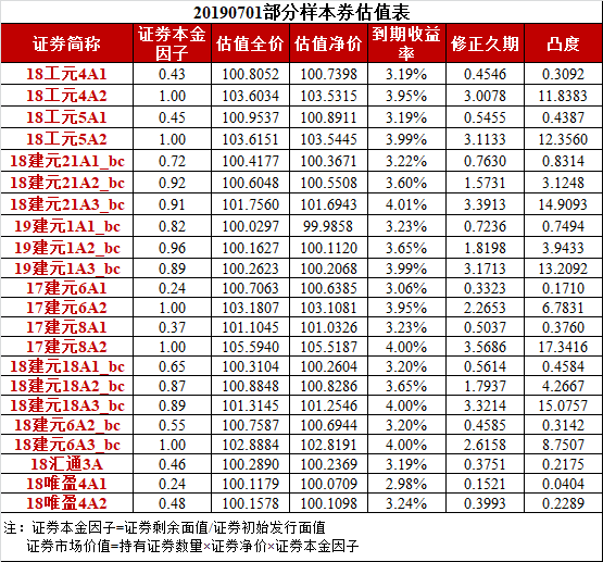 中债资信资产支持证券收益率曲线(2019年7月1日)