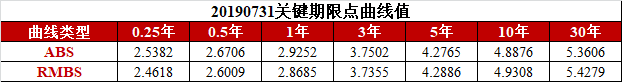 中债资信资产支持证券收益率曲线(2019年7月31日)