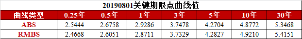 中债资信资产支持证券收益率曲线(2019年8月1日)