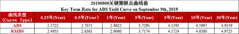 中债资信资产支持证券收益率曲线(2019年9月9日)