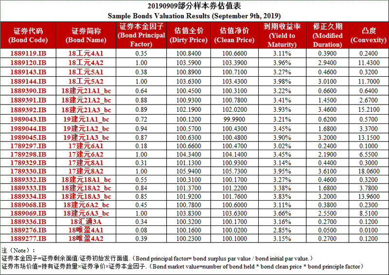 中债资信资产支持证券收益率曲线体系主要包括银行间市场ABS曲线和RMBS收益率曲线。其中,银行间市场ABS收益率曲线的样本券选取市场具有代表性的RMBS、对公CLO、消费贷ABS、车贷ABS等。RMBS收益率曲线为市场首创,样本券包括市场主要RMBS发起机构如工行、建行、中行、农行等的产品。目前编制曲线的级别为中债资信AAA级,曲线类型为即期收益率曲线。编制方法为NS整体拟合法,在市场成交数据有限及期限集中在短期的情况下,采用具备代表性的资产支持证券主动估值作为样本数据来源。中债资信资产支持证券收益率曲线每工作日发布一次。