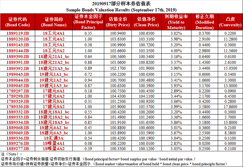 中债资信资产支持证券收益率曲线体系主要包括银行间市场ABS曲线和RMBS收益率曲线。其中,银行间市场ABS收益率曲线的样本券选取市场具有代表性的RMBS、对公CLO、消费贷ABS、车贷ABS等。RMBS收益率曲线为市场首创,样本券包括市场主要RMBS发起机构如工行、建行、中行、农行等的产品。目前编制曲线的级别为中债资信AAA级,曲线类型为即期收益率曲线。编制方法为NS整体拟合法,在市场成交数据有限及期限集中在短期的情况下,采用具备代表性的资产支持证券主动估值作为样本数据来源。中债资信资产支持证券收益率曲线每工作日发布一次。