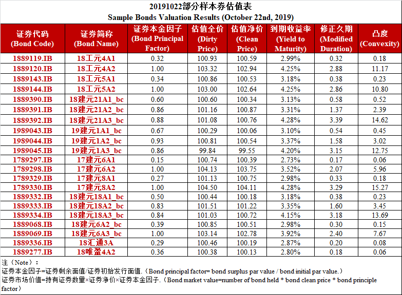 中债资信资产支持证券收益率曲线体系主要包括银行间市场ABS曲线和RMBS收益率曲线。其中,银行间市场ABS收益率曲线的样本券选取市场具有代表性的RMBS、对公CLO、消费贷ABS、车贷ABS等。RMBS收益率曲线为市场首创,样本券包括市场主要RMBS发起机构如工行、建行、中行、农行等的产品。目前编制曲线的级别为中债资信AAA级,曲线类型为即期收益率曲线。编制方法为NS整体拟合法,在市场成交数据有限及期限集中在短期的情况下,采用具备代表性的资产支持证券主动估值作为样本数据来源。中债资信资产支持证券收益率曲线每工作日发布一次。