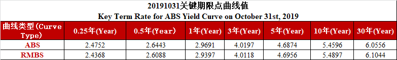 中债资信资产支持证券收益率曲线(2019年10月31日)