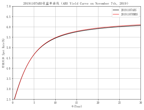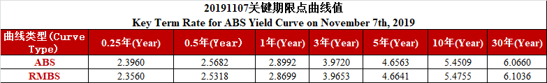 中债资信资产支持证券收益率曲线(2019年11月7日)