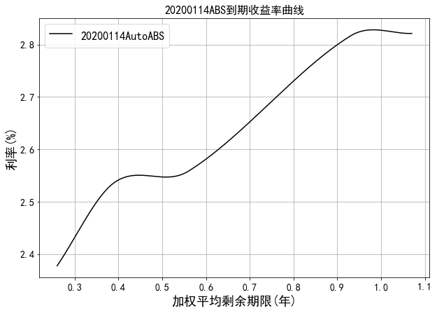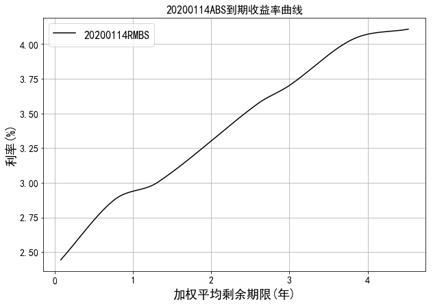中债资信资产支持证券收益率曲线体系主要包括RMBS收益率曲线和汽车贷收益率曲线。RMBS收益率为市场首创,样本券包含市场主要RMBS发起机构如工行、建行、中行、农行等的产品。目前编制曲线的级别为中债资信AAA级,曲线类型为到期收益率曲线。编制方法为插值法。中债资信资产支持证券收益率曲线每工作日发布一次。