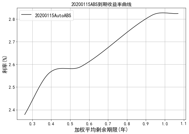 中债资信资产支持证券收益率曲线体系主要包括RMBS收益率曲线和汽车贷收益率曲线。RMBS收益率为市场首创,样本券包含市场主要RMBS发起机构如工行、建行、中行、农行等的产品。目前编制曲线的级别为中债资信AAA级,曲线类型为到期收益率曲线。编制方法为插值法。中债资信资产支持证券收益率曲线每工作日发布一次。