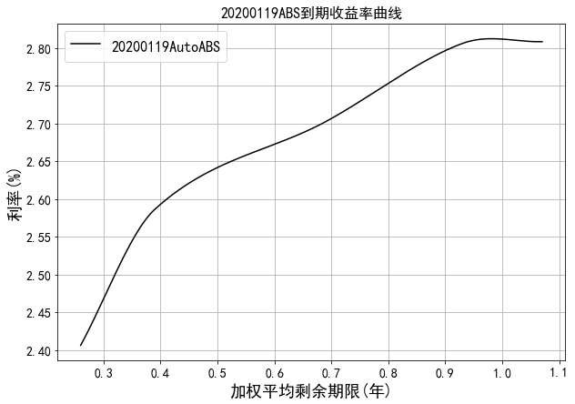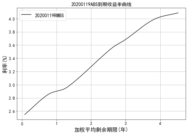 中债资信资产支持证券收益率曲线体系主要包括RMBS收益率曲线和汽车贷收益率曲线。RMBS收益率为市场首创,样本券包含市场主要RMBS发起机构如工行、建行、中行、农行等的产品。目前编制曲线的级别为中债资信AAA级,曲线类型为到期收益率曲线。编制方法为插值法。中债资信资产支持证券收益率曲线每工作日发布一次。