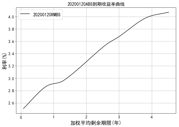 中债资信资产支持证券收益率曲线体系主要包括RMBS收益率曲线和汽车贷收益率曲线。RMBS收益率为市场首创,样本券包含市场主要RMBS发起机构如工行、建行、中行、农行等的产品。目前编制曲线的级别为中债资信AAA级,曲线类型为到期收益率曲线。编制方法为插值法。中债资信资产支持证券收益率曲线每工作日发布一次。