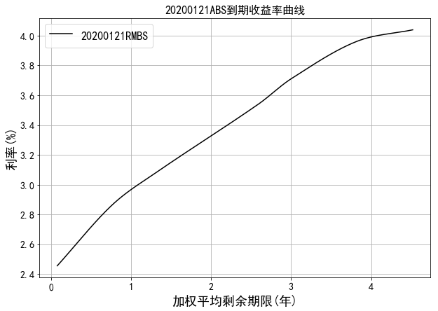 中债资信资产支持证券收益率曲线体系主要包括RMBS收益率曲线和汽车贷收益率曲线。RMBS收益率为市场首创,样本券包含市场主要RMBS发起机构如工行、建行、中行、农行等的产品。目前编制曲线的级别为中债资信AAA级,曲线类型为到期收益率曲线。编制方法为插值法。中债资信资产支持证券收益率曲线每工作日发布一次。