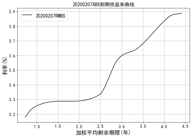 中债资信资产支持证券收益率曲线体系主要包括RMBS收益率曲线和汽车贷收益率曲线。RMBS收益率为市场首创,样本券包含市场主要RMBS发起机构如工行、建行、中行、农行等的产品。目前编制曲线的级别为中债资信AAA级,曲线类型为到期收益率曲线。编制方法为插值法。中债资信资产支持证券收益率曲线每工作日发布一次。