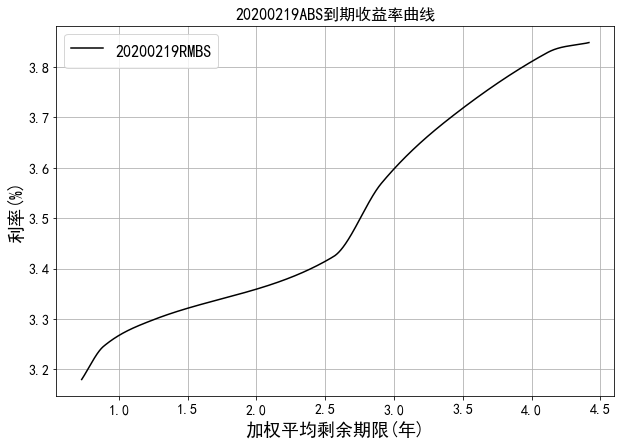 中债资信资产支持证券收益率曲线体系主要包括RMBS收益率曲线和汽车贷收益率曲线。RMBS收益率为市场首创,样本券包含市场主要RMBS发起机构如工行、建行、中行、农行等的产品。目前编制曲线的级别为中债资信AAA级,曲线类型为到期收益率曲线。编制方法为插值法。中债资信资产支持证券收益率曲线每工作日发布一次。
