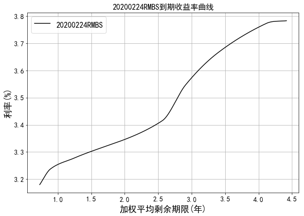 中债资信资产支持证券收益率曲线体系主要包括RMBS收益率曲线和汽车贷收益率曲线。RMBS收益率为市场首创,样本券包含市场主要RMBS发起机构如工行、建行、中行、农行等的产品。目前编制曲线的级别为中债资信AAA级,曲线类型为到期收益率曲线。编制方法为插值法。中债资信资产支持证券收益率曲线每工作日发布一次。
