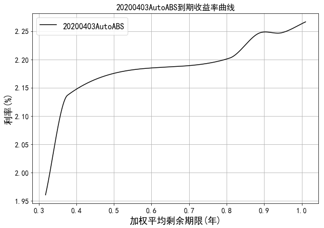 中债资信资产支持证券收益率曲线体系主要包括RMBS收益率曲线和汽车贷收益率曲线。RMBS收益率为市场首创,样本券包含市场主要RMBS发起机构如工行、建行、中行、农行等的产品。目前编制曲线的级别为中债资信AAA级,曲线类型为到期收益率曲线。编制方法为插值法。中债资信资产支持证券收益率曲线每工作日发布一次。