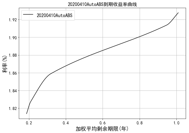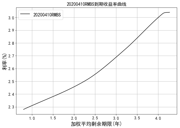 中债资信资产支持证券收益率曲线体系主要包括RMBS收益率曲线和汽车贷收益率曲线。RMBS收益率为市场首创,样本券包含市场主要RMBS发起机构如工行、建行、中行、农行等的产品。目前编制曲线的级别为中债资信AAA级,曲线类型为到期收益率曲线。编制方法为插值法。中债资信资产支持证券收益率曲线每工作日发布一次。