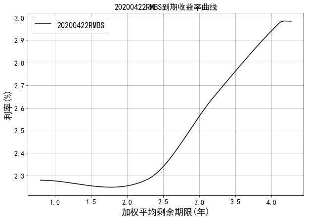 中债资信资产支持证券收益率曲线体系主要包括RMBS收益率曲线和汽车贷收益率曲线。RMBS收益率为市场首创,样本券包含市场主要RMBS发起机构如工行、建行、中行、农行等的产品。目前编制曲线的级别为中债资信AAA级,曲线类型为到期收益率曲线。编制方法为插值法。中债资信资产支持证券收益率曲线每工作日发布一次。