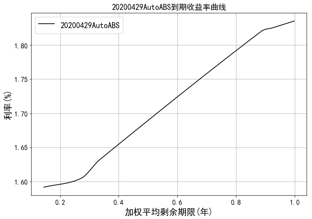 中债资信资产支持证券收益率曲线体系主要包括RMBS收益率曲线和汽车贷收益率曲线。RMBS收益率为市场首创,样本券包含市场主要RMBS发起机构如工行、建行、中行、农行等的产品。目前编制曲线的级别为中债资信AAA级,曲线类型为到期收益率曲线。编制方法为插值法。中债资信资产支持证券收益率曲线每工作日发布一次。