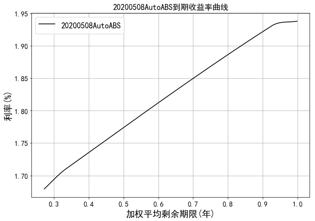 中债资信资产支持证券收益率曲线体系主要包括RMBS收益率曲线和汽车贷收益率曲线。RMBS收益率为市场首创,样本券包含市场主要RMBS发起机构如工行、建行、中行、农行等的产品。目前编制曲线的级别为中债资信AAA级,曲线类型为到期收益率曲线。编制方法为插值法。中债资信资产支持证券收益率曲线每工作日发布一次。