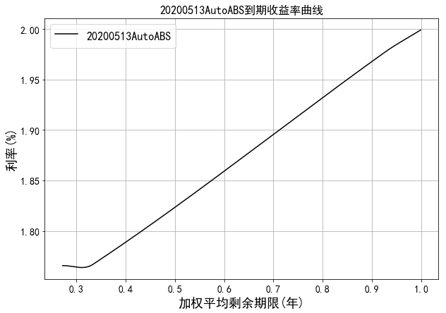 中债资信资产支持证券收益率曲线体系主要包括RMBS收益率曲线和汽车贷收益率曲线。RMBS收益率为市场首创,样本券包含市场主要RMBS发起机构如工行、建行、中行、农行等的产品。目前编制曲线的级别为中债资信AAA级,曲线类型为到期收益率曲线。编制方法为插值法。中债资信资产支持证券收益率曲线每工作日发布一次。