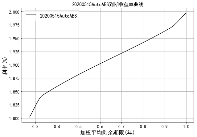 中债资信资产支持证券收益率曲线体系主要包括RMBS收益率曲线和汽车贷收益率曲线。RMBS收益率为市场首创,样本券包含市场主要RMBS发起机构如工行、建行、中行、农行等的产品。目前编制曲线的级别为中债资信AAA级,曲线类型为到期收益率曲线。编制方法为插值法。中债资信资产支持证券收益率曲线每工作日发布一次。