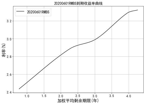 中债资信资产支持证券收益率曲线体系主要包括RMBS收益率曲线和汽车贷收益率曲线。RMBS收益率为市场首创,样本券包含市场主要RMBS发起机构如工行、建行、中行、农行等的产品。目前编制曲线的级别为中债资信AAA级,曲线类型为到期收益率曲线。编制方法为插值法。中债资信资产支持证券收益率曲线每工作日发布一次。