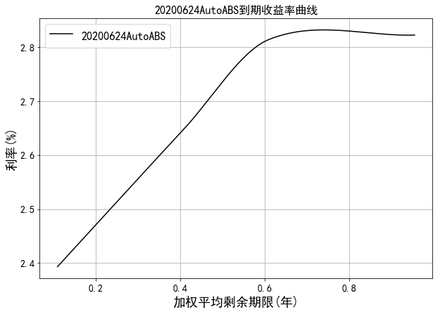 中债资信资产支持证券收益率曲线体系主要包括RMBS收益率曲线和汽车贷收益率曲线。RMBS收益率为市场首创,样本券包含市场主要RMBS发起机构如工行、建行、中行、农行等的产品。目前编制曲线的级别为中债资信AAA级,曲线类型为到期收益率曲线。编制方法为插值法。中债资信资产支持证券收益率曲线每工作日发布一次。