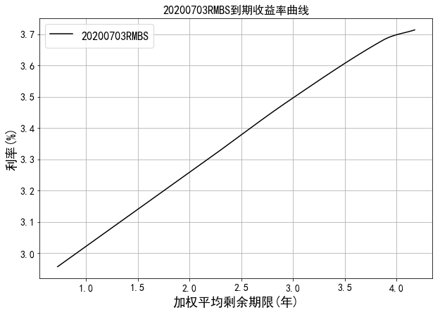 中债资信资产支持证券收益率曲线体系主要包括RMBS收益率曲线和汽车贷收益率曲线。RMBS收益率为市场首创,样本券包含市场主要RMBS发起机构如工行、建行、中行、农行等的产品。目前编制曲线的级别为中债资信AAA级,曲线类型为到期收益率曲线。编制方法为插值法。中债资信资产支持证券收益率曲线每工作日发布一次。