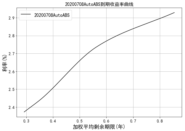 中债资信资产支持证券收益率曲线体系主要包括RMBS收益率曲线和汽车贷收益率曲线。RMBS收益率为市场首创,样本券包含市场主要RMBS发起机构如工行、建行、中行、农行等的产品。目前编制曲线的级别为中债资信AAA级,曲线类型为到期收益率曲线。编制方法为插值法。中债资信资产支持证券收益率曲线每工作日发布一次。