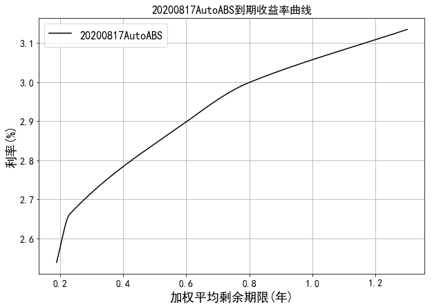 中债资信资产支持证券收益率曲线体系主要包括RMBS收益率曲线和汽车贷收益率曲线。RMBS收益率为市场首创,样本券包含市场主要RMBS发起机构如工行、建行、中行、农行等的产品。目前编制曲线的级别为中债资信AAA级,曲线类型为到期收益率曲线。编制方法为插值法。中债资信资产支持证券收益率曲线每工作日发布一次。