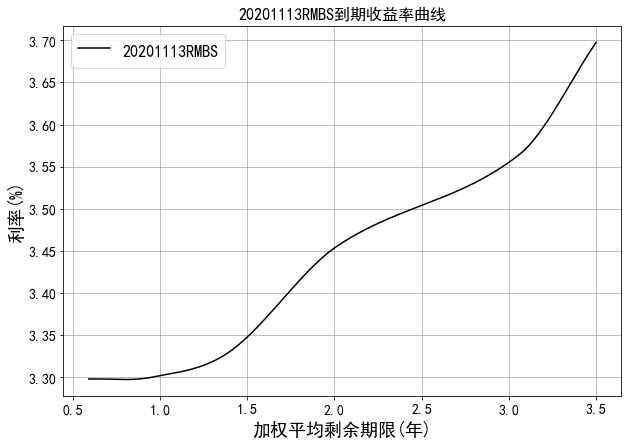 中债资信资产支持证券收益率曲线体系主要包括RMBS收益率曲线和汽车贷收益率曲线。RMBS收益率为市场首创,样本券包含市场主要RMBS发起机构如工行、建行、中行、农行等的产品。目前编制曲线的级别为中债资信AAA级,曲线类型为到期收益率曲线。编制方法为插值法。中债资信资产支持证券收益率曲线每工作日发布一次。