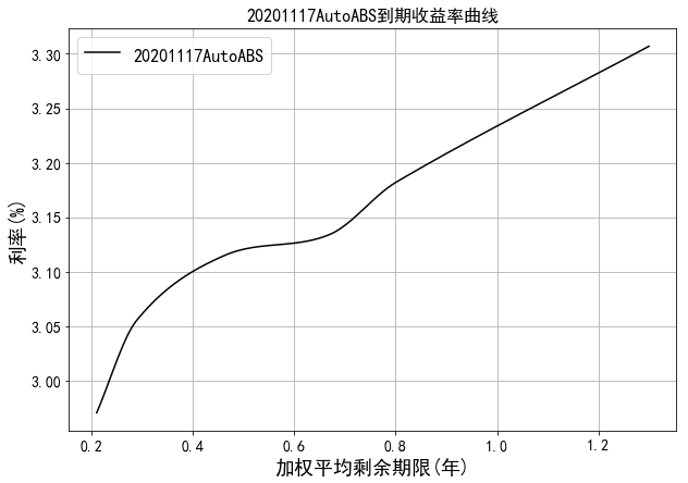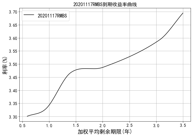 中债资信资产支持证券收益率曲线体系主要包括RMBS收益率曲线和汽车贷收益率曲线。RMBS收益率为市场首创,样本券包含市场主要RMBS发起机构如工行、建行、中行、农行等的产品。目前编制曲线的级别为中债资信AAA级,曲线类型为到期收益率曲线。编制方法为插值法。中债资信资产支持证券收益率曲线每工作日发布一次。