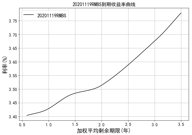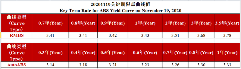 中债资信资产支持证券收益率曲线体系主要包括RMBS收益率曲线和汽车贷收益率曲线。RMBS收益率为市场首创,样本券包含市场主要RMBS发起机构如工行、建行、中行、农行等的产品。目前编制曲线的级别为中债资信AAA级,曲线类型为到期收益率曲线。编制方法为插值法。中债资信资产支持证券收益率曲线每工作日发布一次。