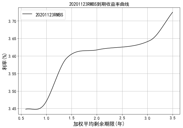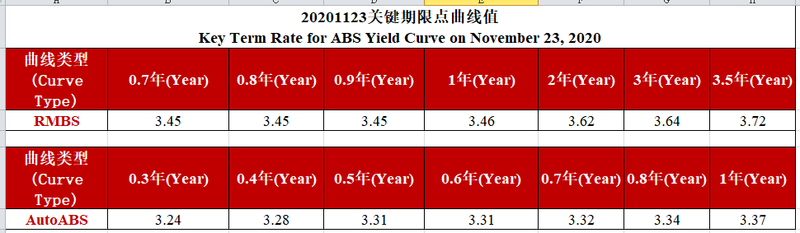 中债资信资产支持证券收益率曲线体系主要包括RMBS收益率曲线和汽车贷收益率曲线。RMBS收益率为市场首创,样本券包含市场主要RMBS发起机构如工行、建行、中行、农行等的产品。目前编制曲线的级别为中债资信AAA级,曲线类型为到期收益率曲线。编制方法为插值法。中债资信资产支持证券收益率曲线每工作日发布一次。