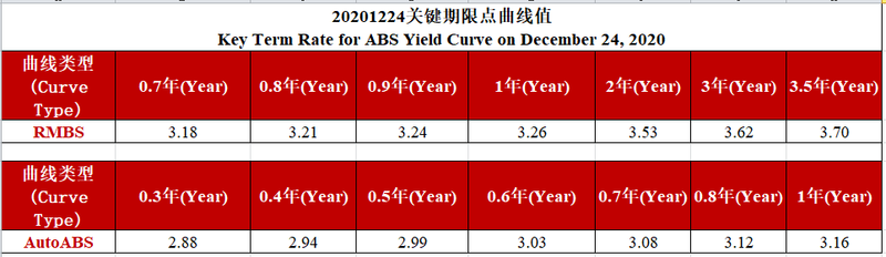 中债资信资产支持证券收益率曲线体系主要包括RMBS收益率曲线和汽车贷收益率曲线。RMBS收益率为市场首创,样本券包含市场主要RMBS发起机构如工行、建行、中行、农行等的产品。目前编制曲线的级别为中债资信AAA级,曲线类型为到期收益率曲线。编制方法为插值法。中债资信资产支持证券收益率曲线每工作日发布一次。