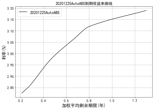 中债资信资产支持证券收益率曲线体系主要包括RMBS收益率曲线和汽车贷收益率曲线。RMBS收益率为市场首创,样本券包含市场主要RMBS发起机构如工行、建行、中行、农行等的产品。目前编制曲线的级别为中债资信AAA级,曲线类型为到期收益率曲线。编制方法为插值法。中债资信资产支持证券收益率曲线每工作日发布一次。