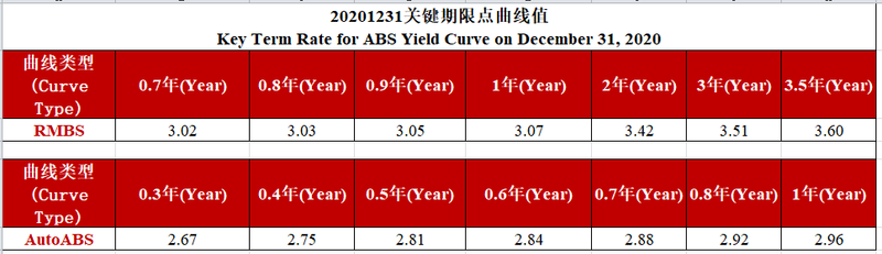 中债资信资产支持证券收益率曲线体系主要包括RMBS收益率曲线和汽车贷收益率曲线。RMBS收益率为市场首创,样本券包含市场主要RMBS发起机构如工行、建行、中行、农行等的产品。目前编制曲线的级别为中债资信AAA级,曲线类型为到期收益率曲线。编制方法为插值法。中债资信资产支持证券收益率曲线每工作日发布一次。