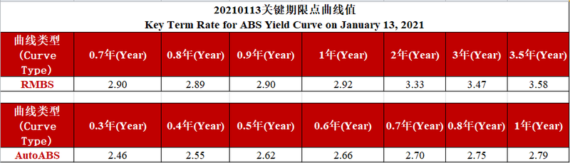 中债资信资产支持证券收益率曲线体系主要包括RMBS收益率曲线和汽车贷收益率曲线。RMBS收益率为市场首创,样本券包含市场主要RMBS发起机构如工行、建行、中行、农行等的产品。目前编制曲线的级别为中债资信AAA级,曲线类型为到期收益率曲线。编制方法为插值法。中债资信资产支持证券收益率曲线每工作日发布一次。