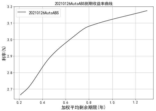 中债资信资产支持证券收益率曲线体系主要包括RMBS收益率曲线和汽车贷收益率曲线。RMBS收益率为市场首创,样本券包含市场主要RMBS发起机构如工行、建行、中行、农行等的产品。目前编制曲线的级别为中债资信AAA级,曲线类型为到期收益率曲线。编制方法为插值法。中债资信资产支持证券收益率曲线每工作日发布一次。