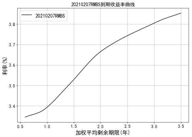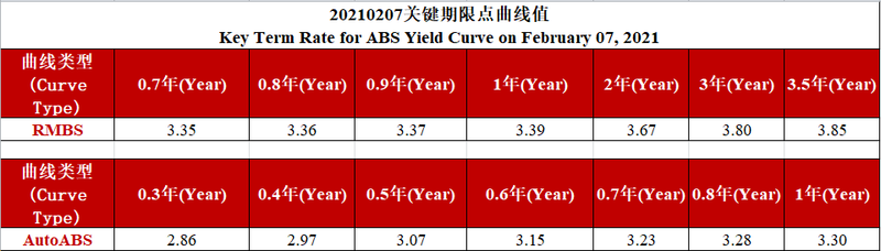 中债资信资产支持证券收益率曲线体系主要包括RMBS收益率曲线和汽车贷收益率曲线。RMBS收益率为市场首创,样本券包含市场主要RMBS发起机构如工行、建行、中行、农行等的产品。目前编制曲线的级别为中债资信AAA级,曲线类型为到期收益率曲线。编制方法为插值法。中债资信资产支持证券收益率曲线每工作日发布一次。
