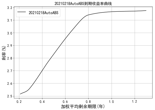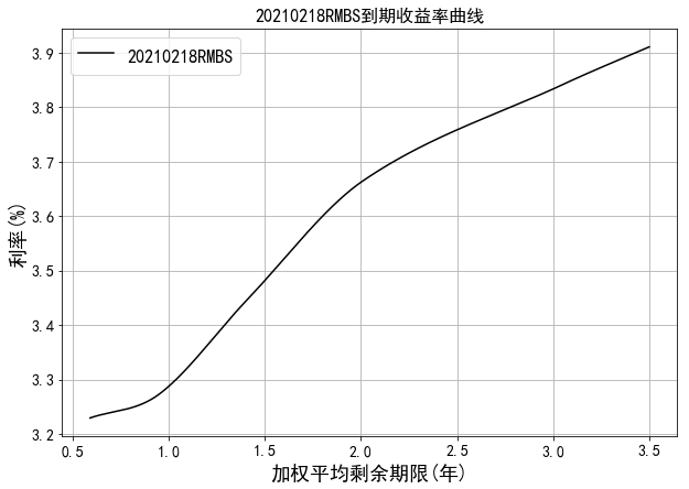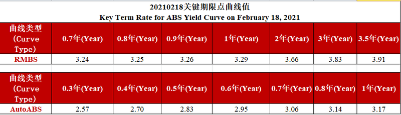 中债资信资产支持证券收益率曲线体系主要包括RMBS收益率曲线和汽车贷收益率曲线。RMBS收益率为市场首创,样本券包含市场主要RMBS发起机构如工行、建行、中行、农行等的产品。目前编制曲线的级别为中债资信AAA级,曲线类型为到期收益率曲线。编制方法为插值法。中债资信资产支持证券收益率曲线每工作日发布一次。