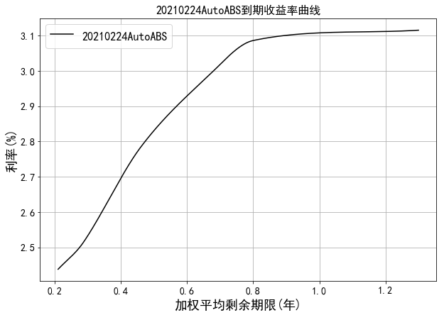 中债资信资产支持证券收益率曲线体系主要包括RMBS收益率曲线和汽车贷收益率曲线。RMBS收益率为市场首创,样本券包含市场主要RMBS发起机构如工行、建行、中行、农行等的产品。目前编制曲线的级别为中债资信AAA级,曲线类型为到期收益率曲线。编制方法为插值法。中债资信资产支持证券收益率曲线每工作日发布一次。