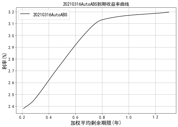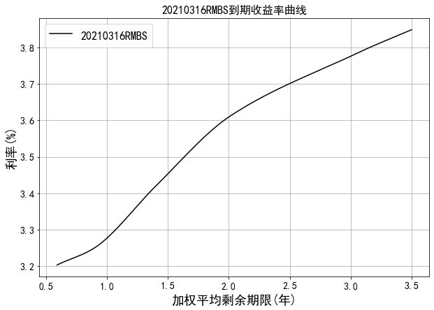 中债资信资产支持证券收益率曲线体系主要包括RMBS收益率曲线和汽车贷收益率曲线。RMBS收益率为市场首创,样本券包含市场主要RMBS发起机构如工行、建行、中行、农行等的产品。目前编制曲线的级别为中债资信AAA级,曲线类型为到期收益率曲线。编制方法为插值法。中债资信资产支持证券收益率曲线每工作日发布一次。