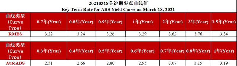 中债资信资产支持证券收益率曲线体系主要包括RMBS收益率曲线和汽车贷收益率曲线。RMBS收益率为市场首创,样本券包含市场主要RMBS发起机构如工行、建行、中行、农行等的产品。目前编制曲线的级别为中债资信AAA级,曲线类型为到期收益率曲线。编制方法为插值法。中债资信资产支持证券收益率曲线每工作日发布一次。
