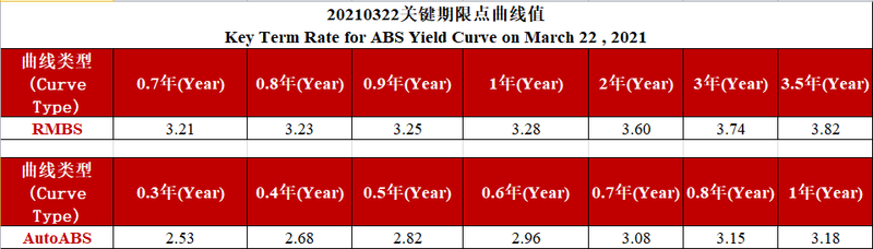 中债资信资产支持证券收益率曲线体系主要包括RMBS收益率曲线和汽车贷收益率曲线。RMBS收益率为市场首创,样本券包含市场主要RMBS发起机构如工行、建行、中行、农行等的产品。目前编制曲线的级别为中债资信AAA级,曲线类型为到期收益率曲线。编制方法为插值法。中债资信资产支持证券收益率曲线每工作日发布一次。