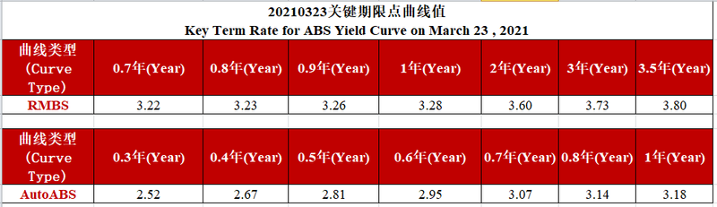 中债资信资产支持证券收益率曲线体系主要包括RMBS收益率曲线和汽车贷收益率曲线。RMBS收益率为市场首创,样本券包含市场主要RMBS发起机构如工行、建行、中行、农行等的产品。目前编制曲线的级别为中债资信AAA级,曲线类型为到期收益率曲线。编制方法为插值法。中债资信资产支持证券收益率曲线每工作日发布一次。