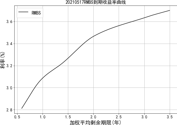 中债资信资产支持证券收益率曲线体系主要包括RMBS收益率曲线和汽车贷收益率曲线。RMBS收益率为市场首创,样本券包含市场主要RMBS发起机构如工行、建行、中行、农行等的产品。目前编制曲线的级别为中债资信AAA级,曲线类型为到期收益率曲线。编制方法为插值法。中债资信资产支持证券收益率曲线每工作日发布一次。