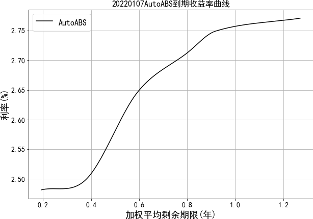 中债资信资产支持证券收益率曲线体系主要包括RMBS收益率曲线和汽车贷收益率曲线。RMBS收益率为市场首创,样本券包含市场主要RMBS发起机构如工行、建行、中行、农行等的产品。目前编制曲线的级别为中债资信AAA级,曲线类型为到期收益率曲线。编制方法为插值法。中债资信资产支持证券收益率曲线每工作日发布一次。